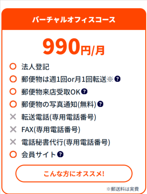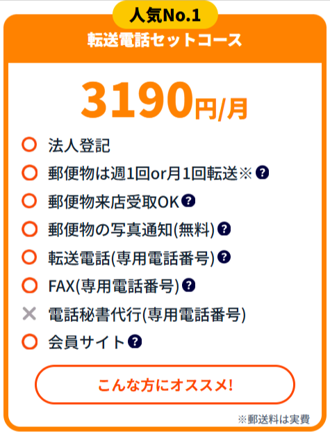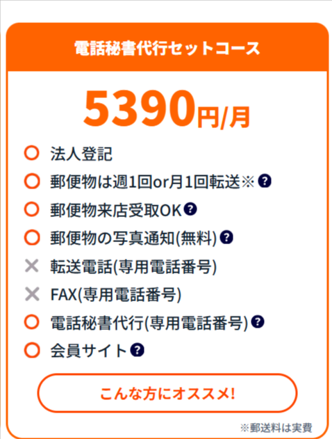 また、法人登記や郵便物転送がすべて込みで
