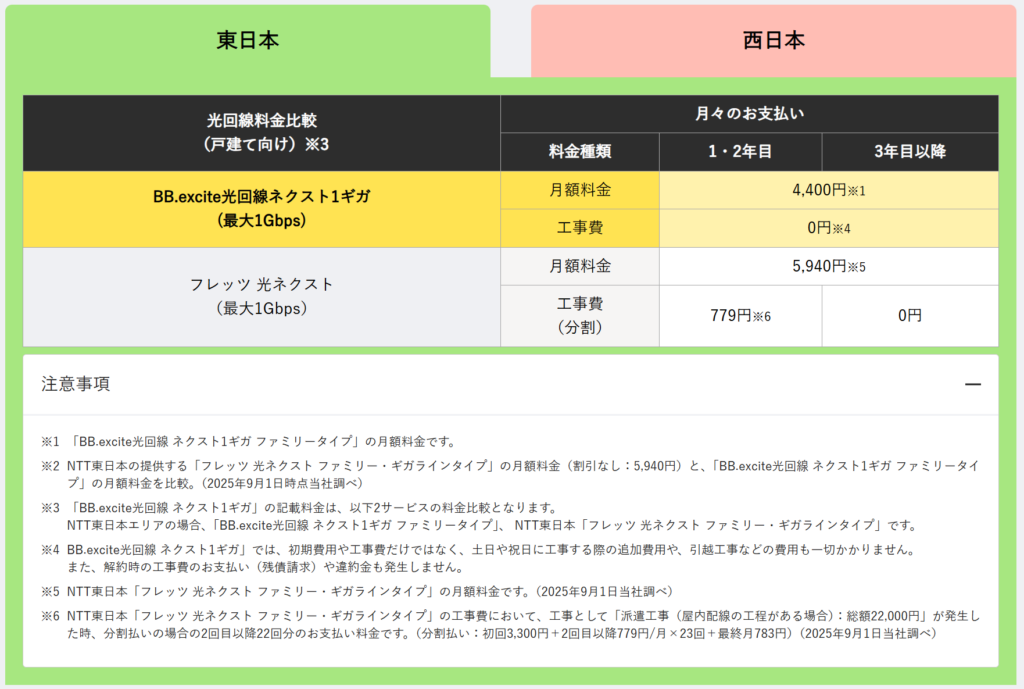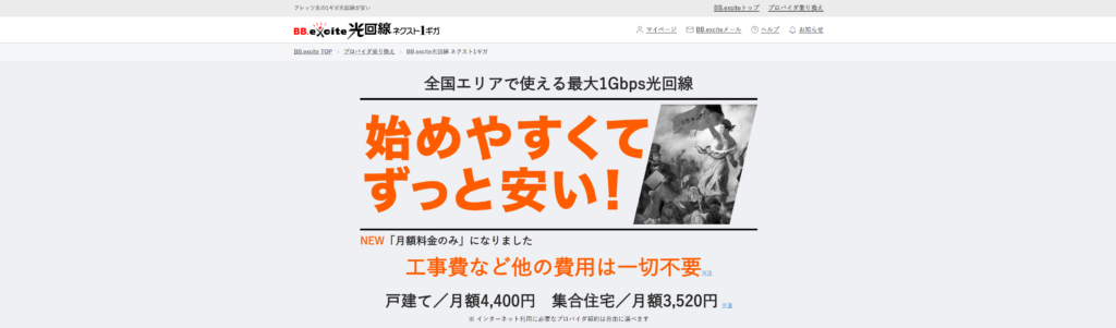 商材名 BB.excite光回線 ネクスト1ギガ