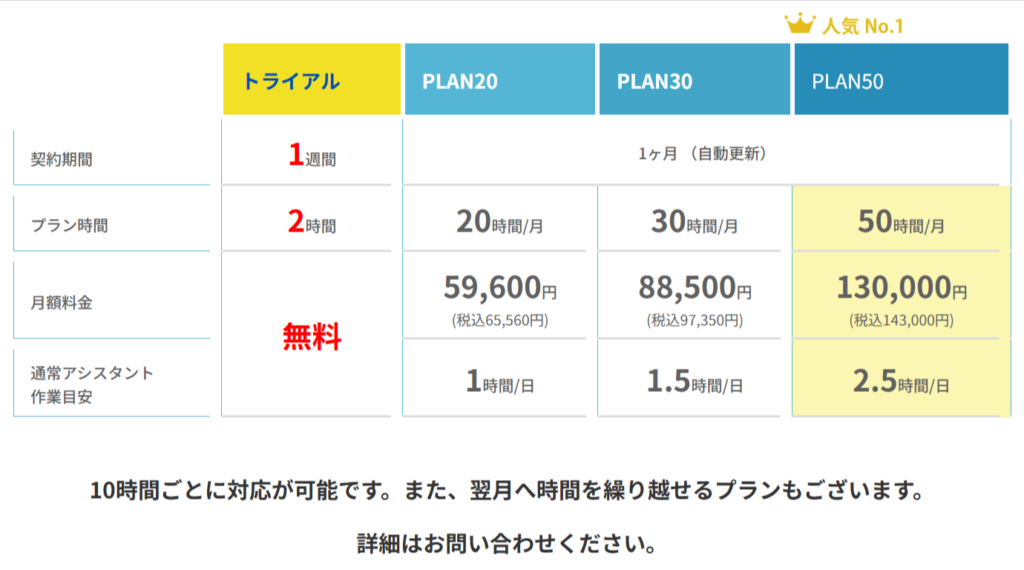 業界の半額程度のプランを実現。1ヶ月利用もでき、オンラインアシスタントがもっと身近に。