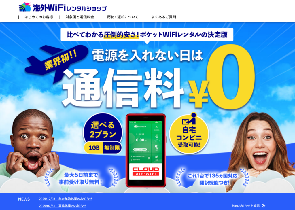 本日は電源を入れない日は「通信料0円」でお馴染みの海外向けWiFiルーターレンタルサービスのご紹介です。